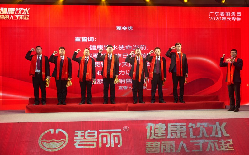 碧麗營銷部代表在碧麗總裁巫宗權(quán)先生的見證下立下軍令狀,并表示在2021年將超額完成任務(wù),繼續(xù)為中國公共飲水事業(yè)做奉獻。宣誓儀式后,總裁為他們一一授旗,激勵各營銷部代表朝著目標奮進!